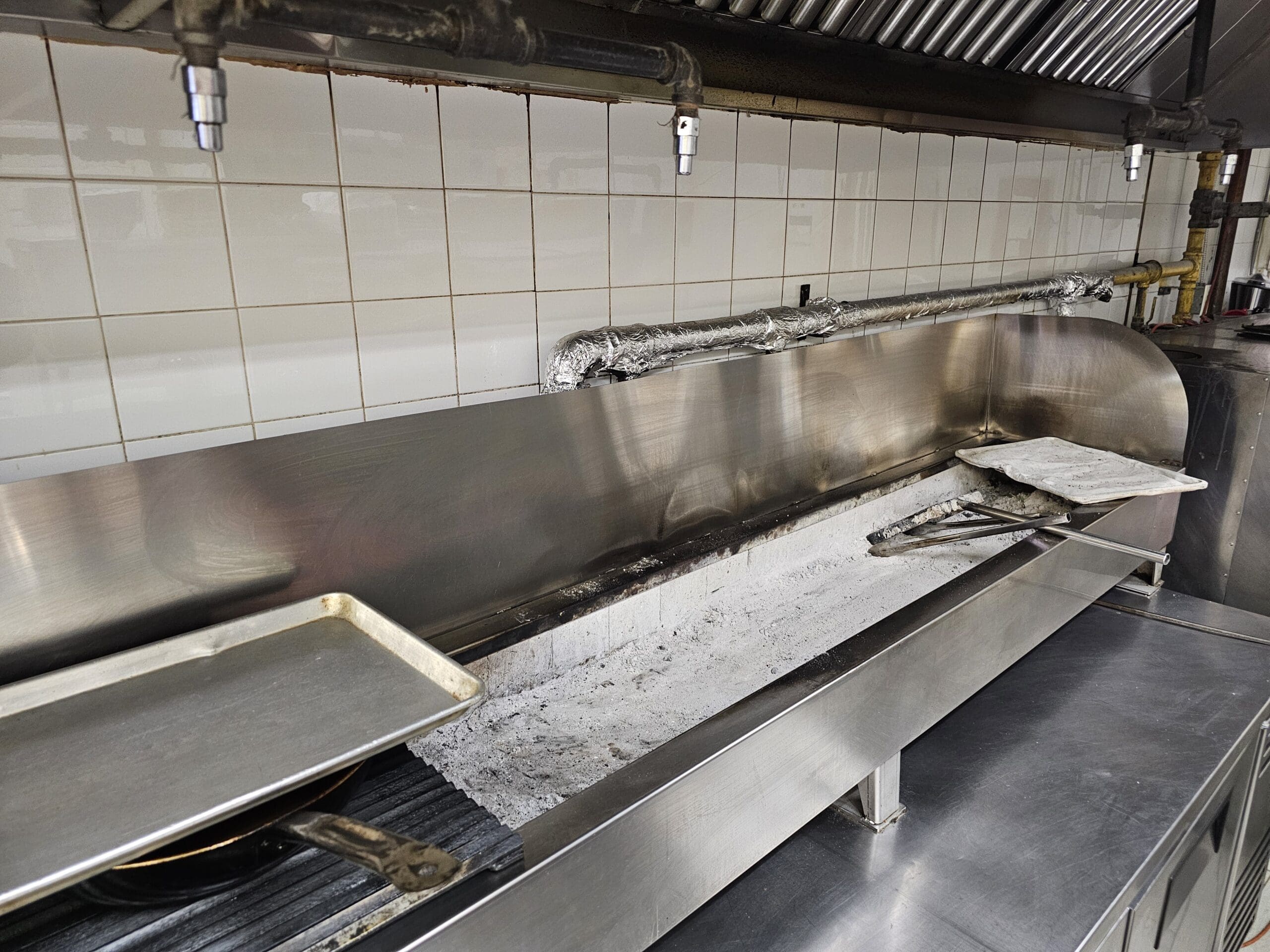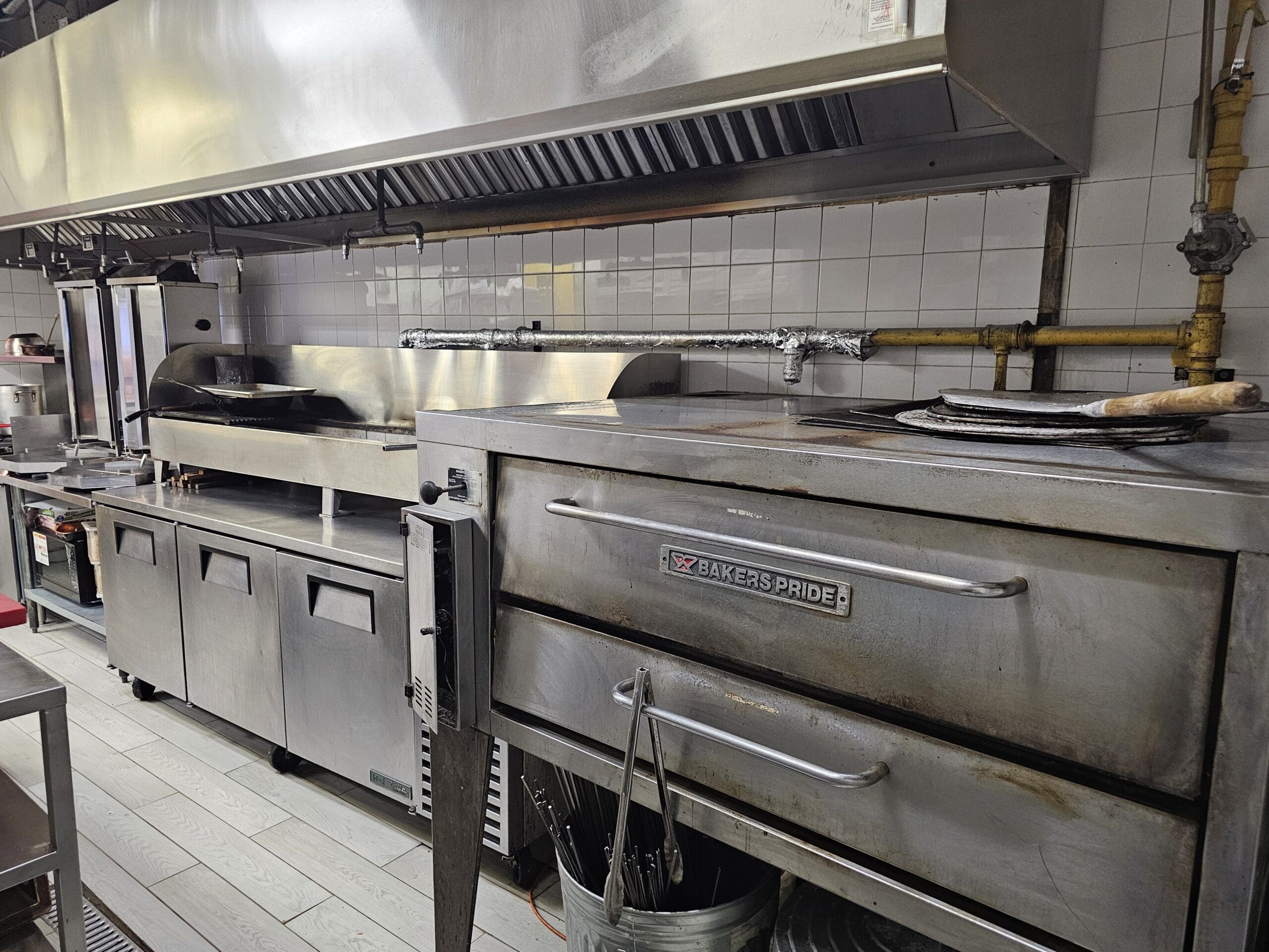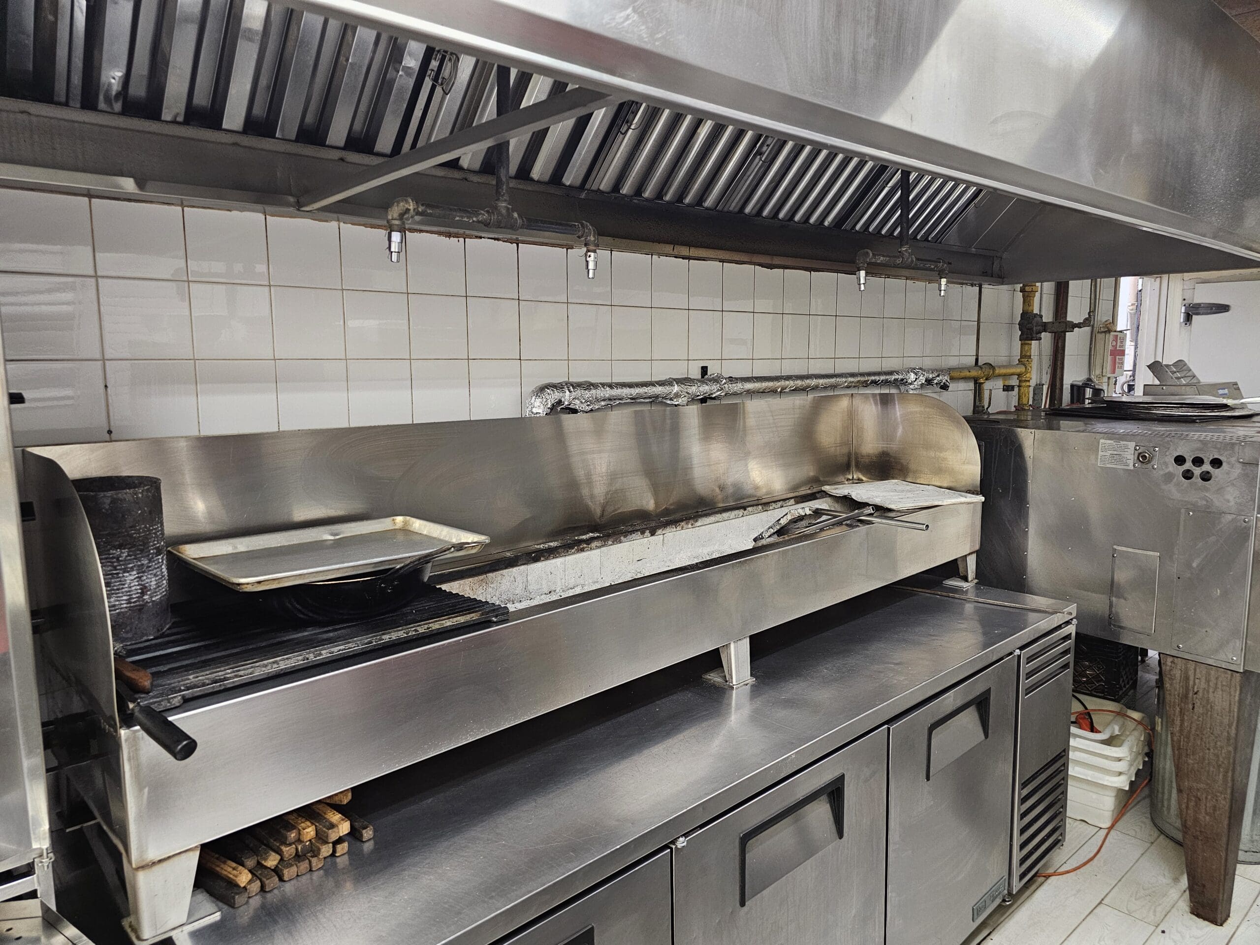 The kitchen features a big 16-foot commercial hood that features charcoal, which is extremely difficult to obtain as the permit is grandfathered in. There is a ton of other equipment in the kitchen and it is set up to handle the restaurant at capacity plus online and pick up orders.