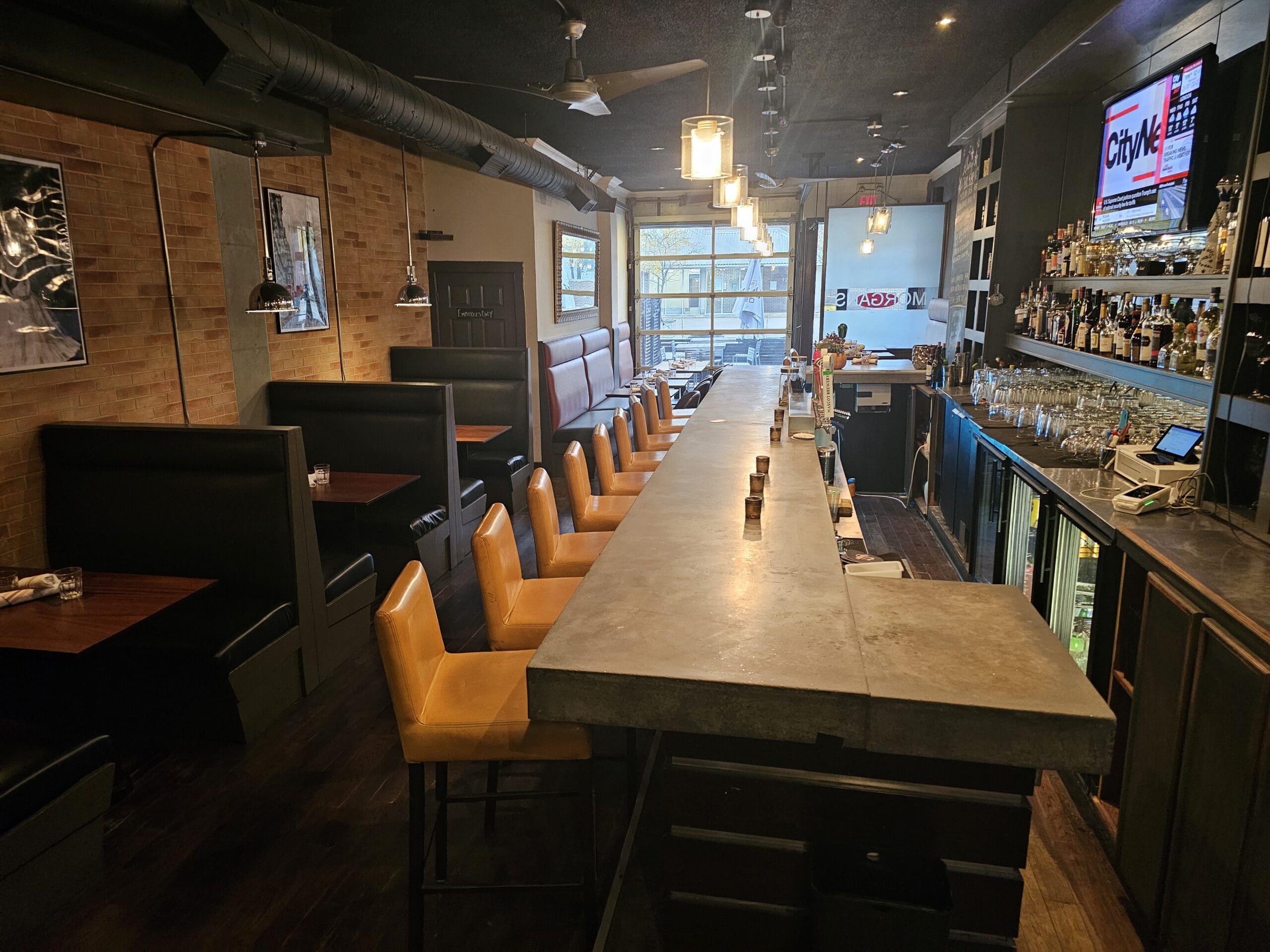 The space has exposed brick throughout and a warm, inviting atmosphere complemented by a true “people-watching” patio that captures steady foot traffic.