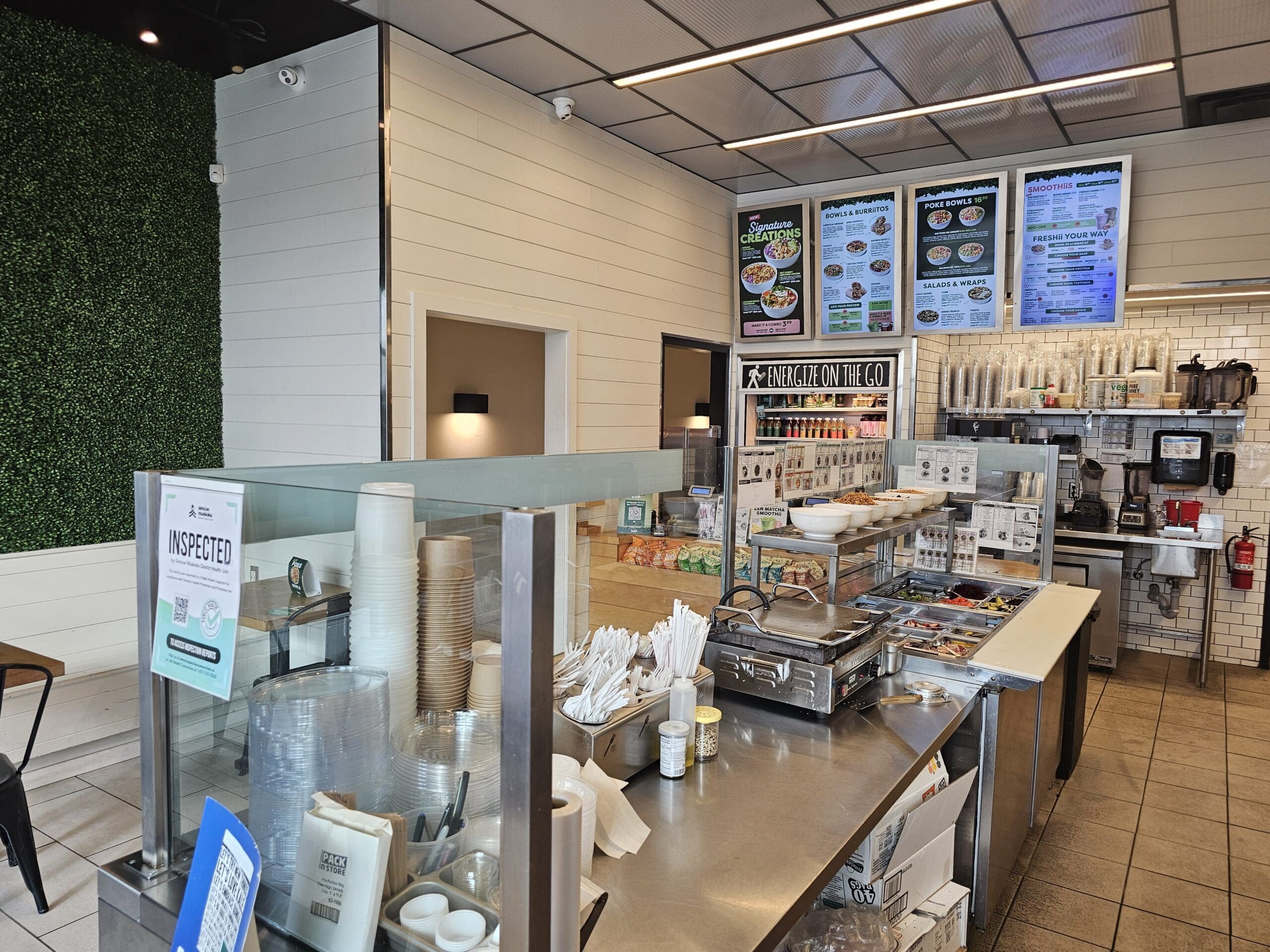 Modern Freshii franchise located in a busy and growing plaza in Innisfil. This successful location has strong sales and consistent profits, providing a solid business opportunity. The plaza enjoys excellent visibility and steady traffic throughout the day, surrounded by complementary retail and food businesses that drive continuous customer flow.