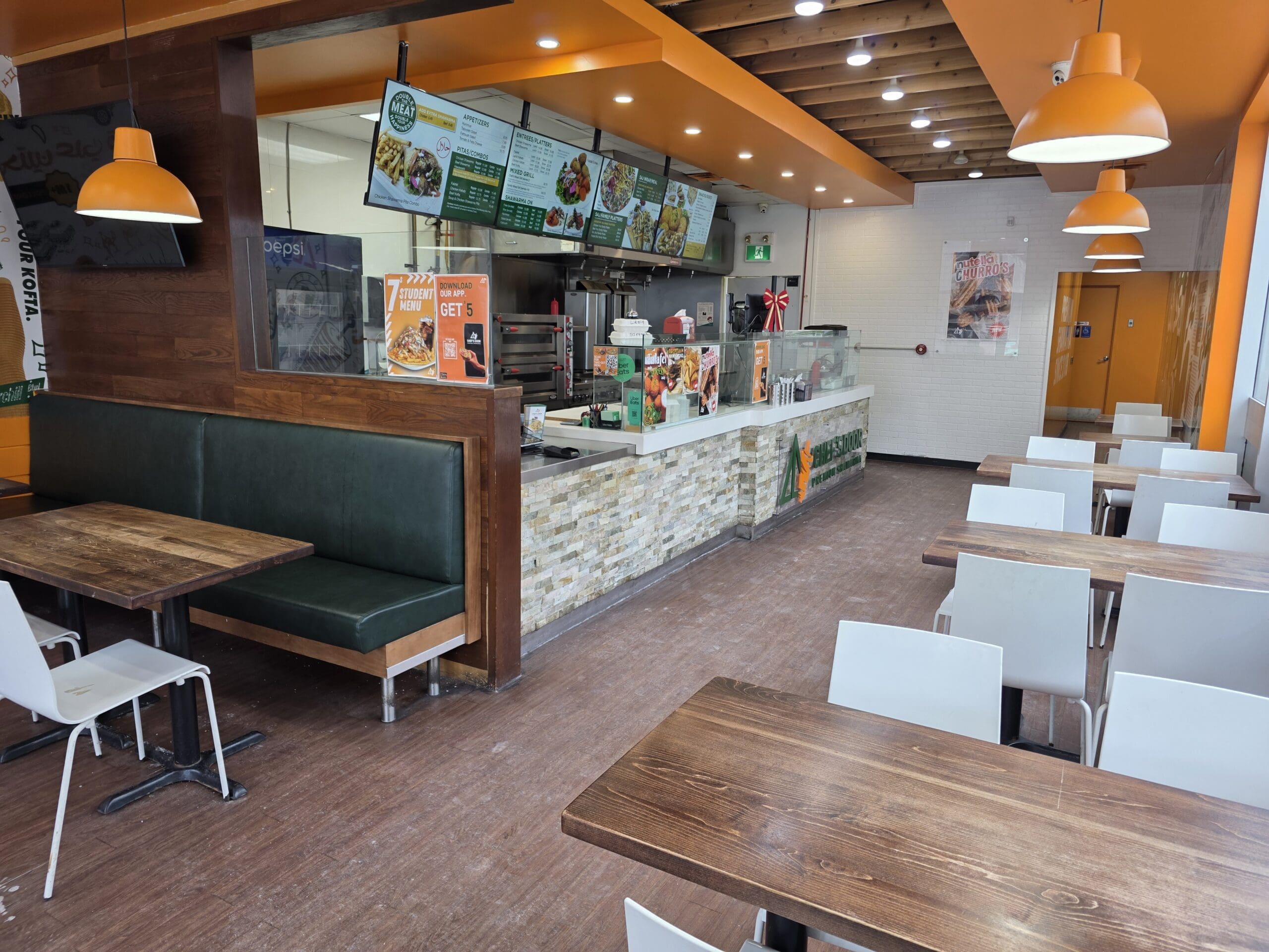 Shawarma quick service restaurant (QSR) location available for rebranding into a different concept, cuisine, or franchise. Currently operating as a well-known premium shawarma business, this is a clean and modern setup with excellent infrastructure already in place. Ideal for a variety of food concepts including QSR, takeout, or hybrid dine-in operations with strong existing layout and flow.