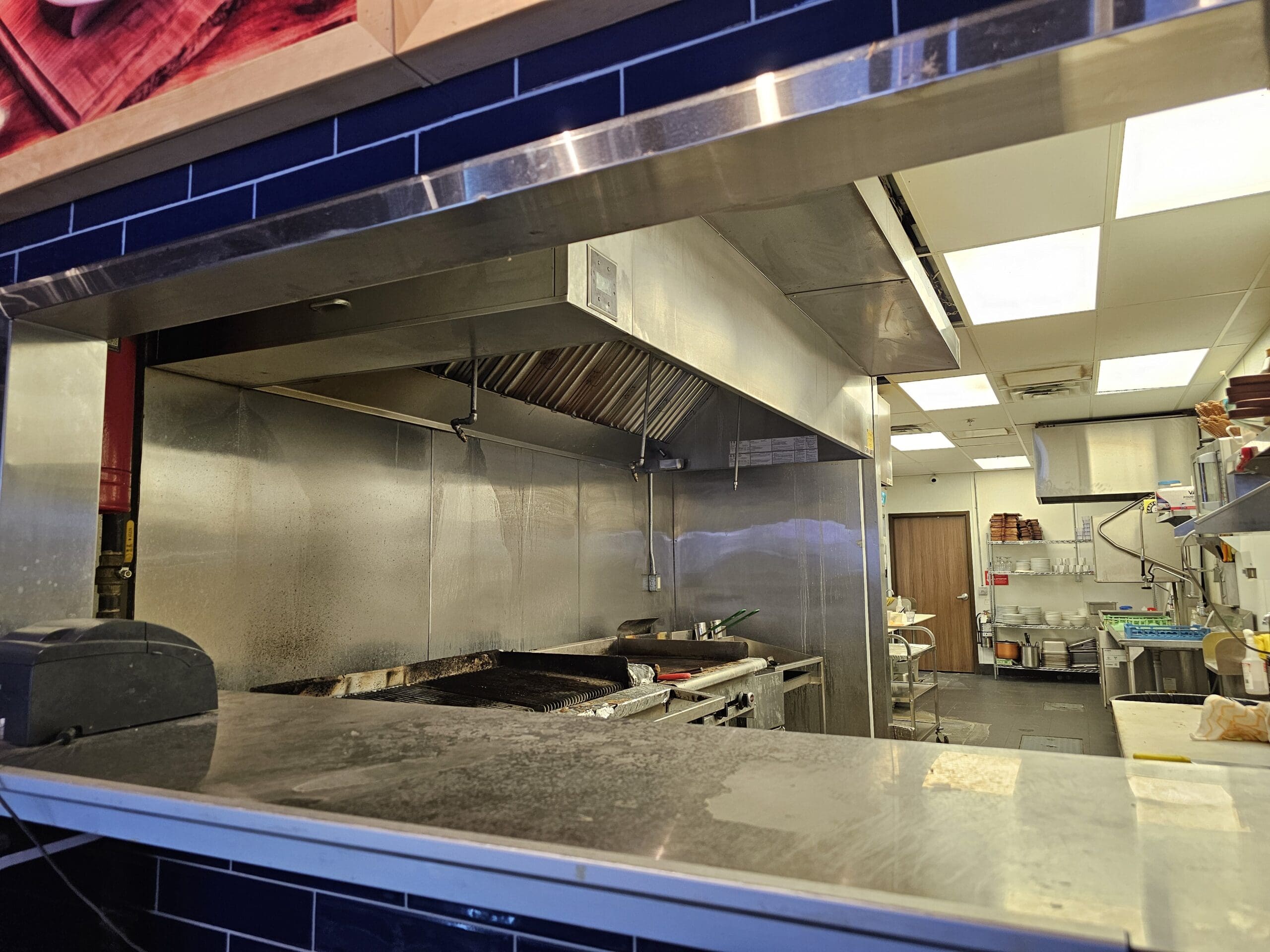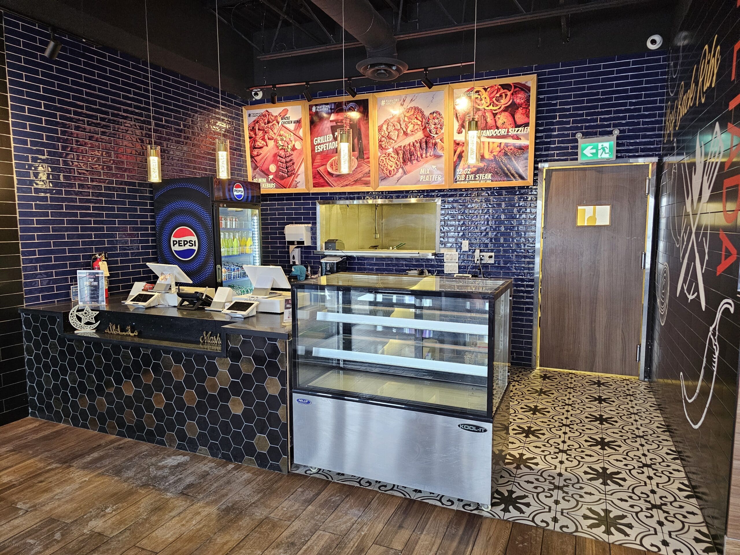 The property is fully equipped for efficient restaurant operations, featuring a 10 ft commercial hood, 2 walk-in coolers/freezers (1 + 1), and ample space for kitchen prep and storage. Currently operating as a popular halal concept, the location is also ideal for rebranding into a different concept, cuisine, or franchise, offering flexibility to new operators.