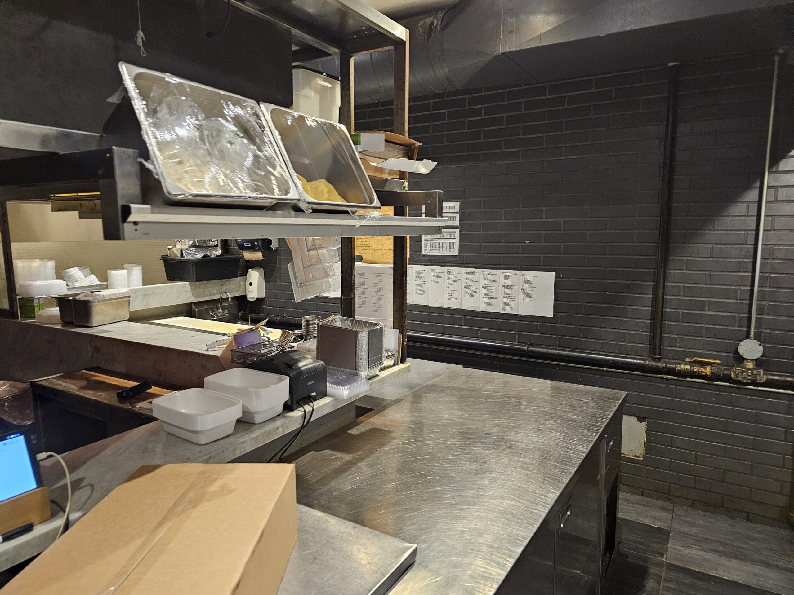 The space also includes a full prep area downstairs, providing plenty of room for food production and operations.