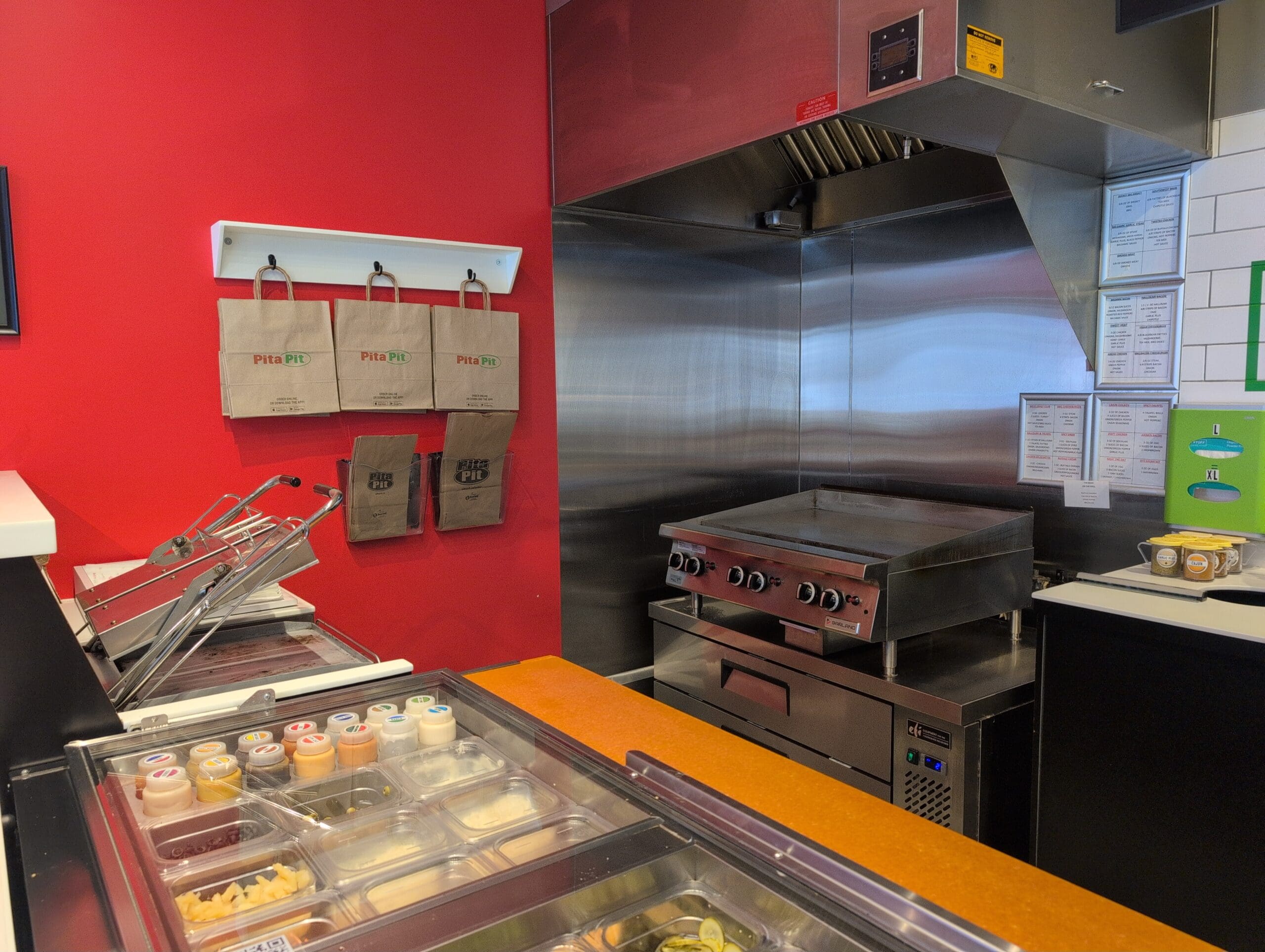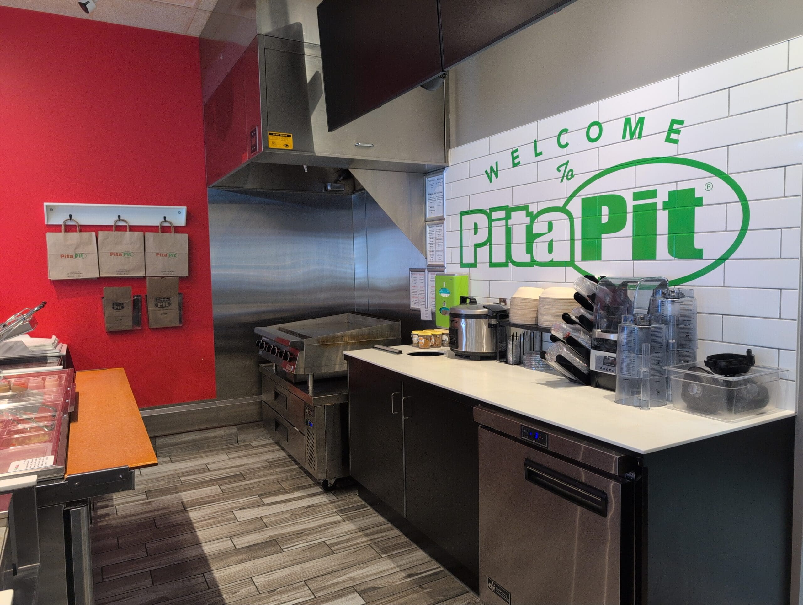 Modern Pita Pit location in Kingston, the hometown where this popular quick service restaurant franchise first began. This 1,161 sq ft space is ideal for a QSR operation with low labour requirements and an efficient layout, including seating for 12 indoors plus 8 on the patio. The unit also features ample parking with space for 100 vehicles, making it highly accessible for both locals and visitors.