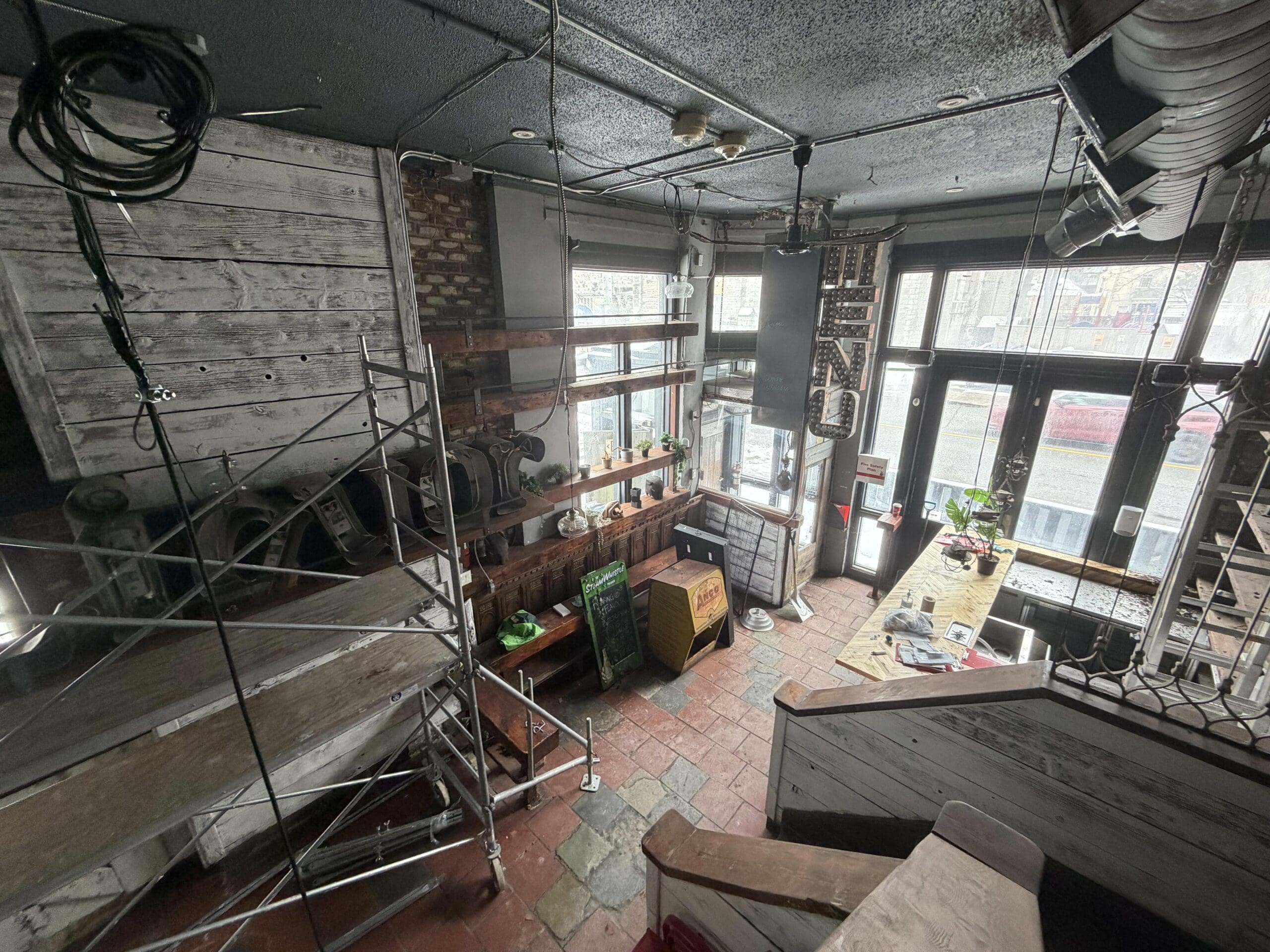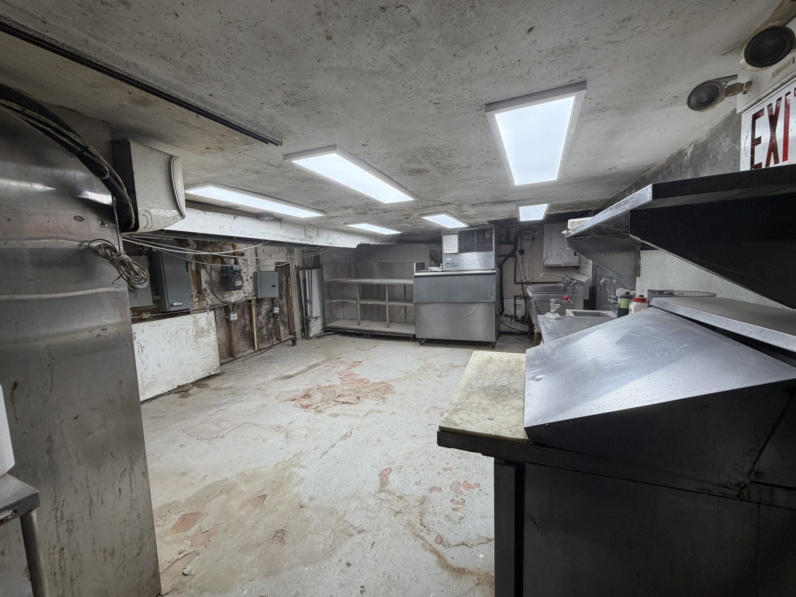 2,355 sq ft layout with a super cool bar, 3 levels with customer seating, a full commercial kitchen with a 10 ft hood, lots of equipment, and 1 walk-in fridge. There is additional prep area in the basement.