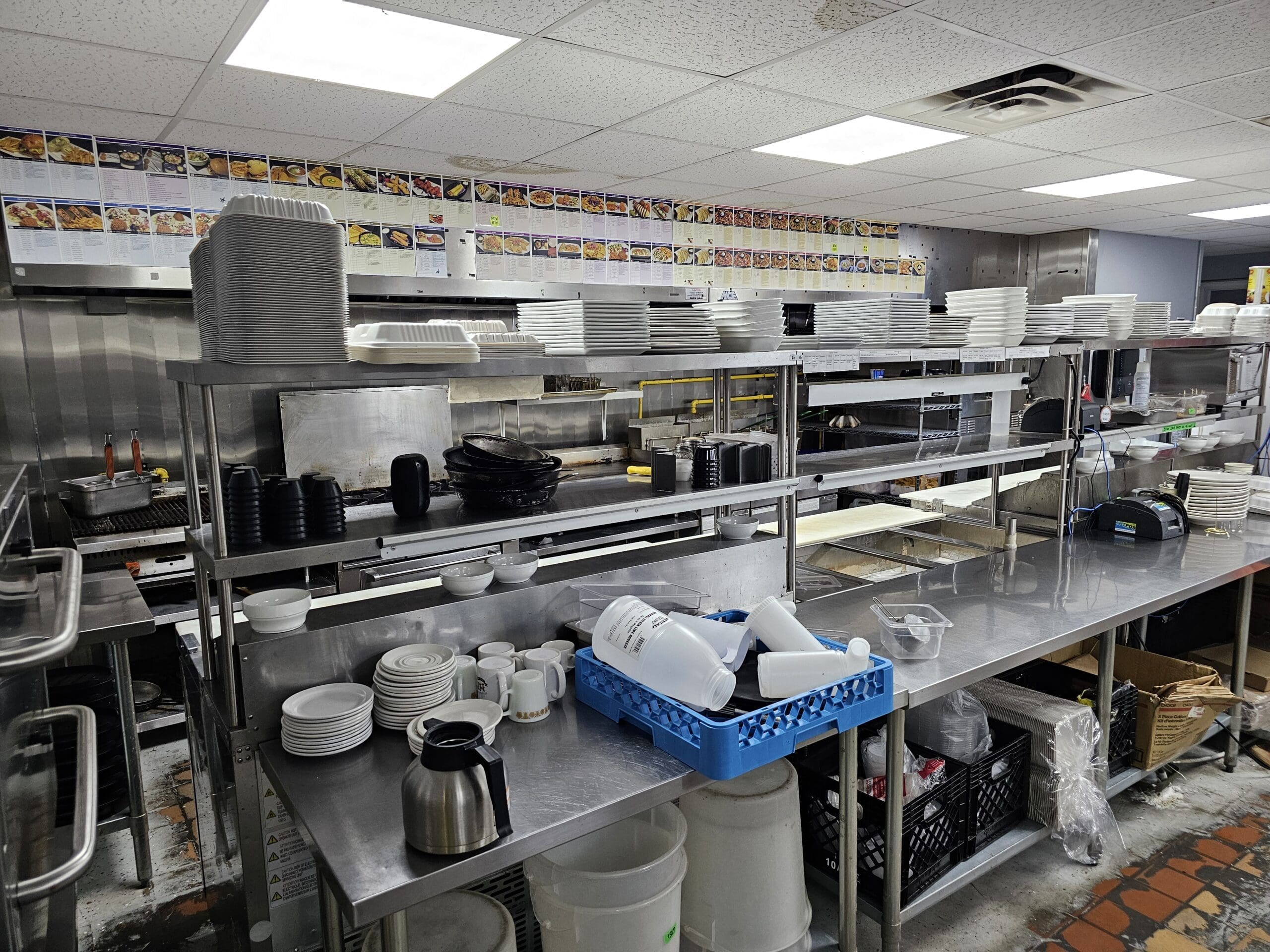 A pressed tin ceiling, plenty of booths and ample parking make for an ideal family restaurant property. Fully licensed with 190 seats in + out, and zero restrictions. Features huge 20 foot commercial hood and 2 walk-ins. Training provided or rebrand into a new concept, cuisine or franchise.